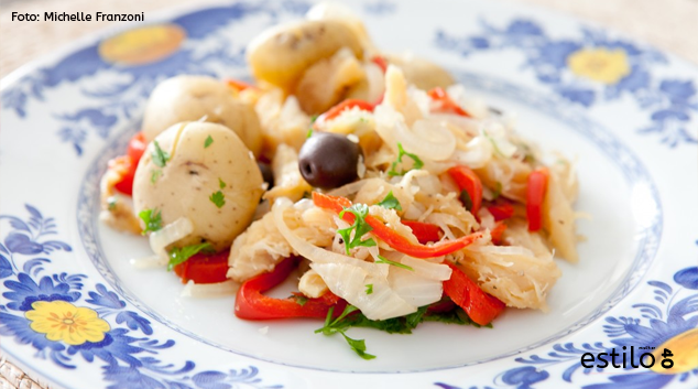 Bacalhau é um peixe muito saudável, mas por causa do sal e do excesso de azeite no preparo, pode ficar muito pesado. Portanto, dessalgue-o bem fervendo-o e trocando a água por umas três vezes, pelo menos. E se por conta do preço o bacalhau não couber no seu orçamento, essa mesma receita pode ser usada para o preparo de outro peixe, como o cação em postas ou o lombo de cação, por exemplo. Ou mesmo o filé de sardinha.