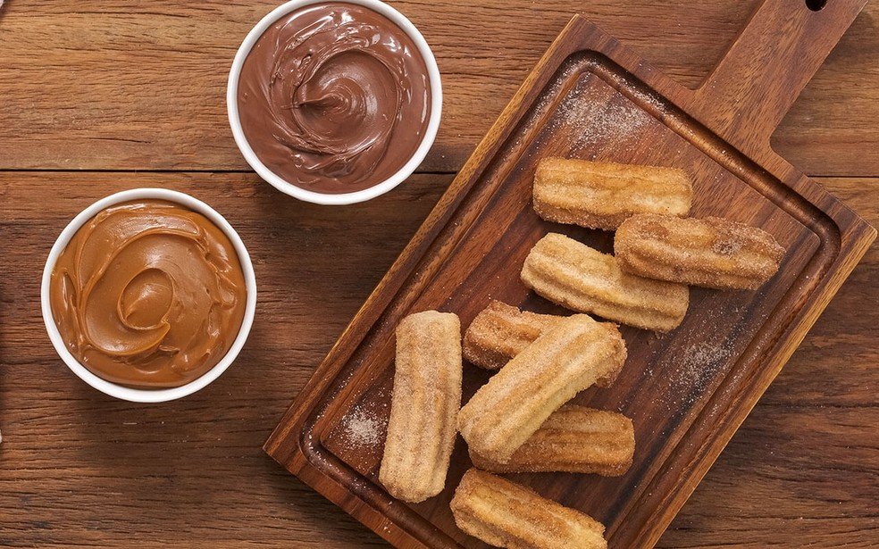 Em um recipiente, misture açúcar e canela a gosto. Em seguida, passe os churros na mistura e sirva – com creme de avelã, doce de leite ou o doce de sua preferência.