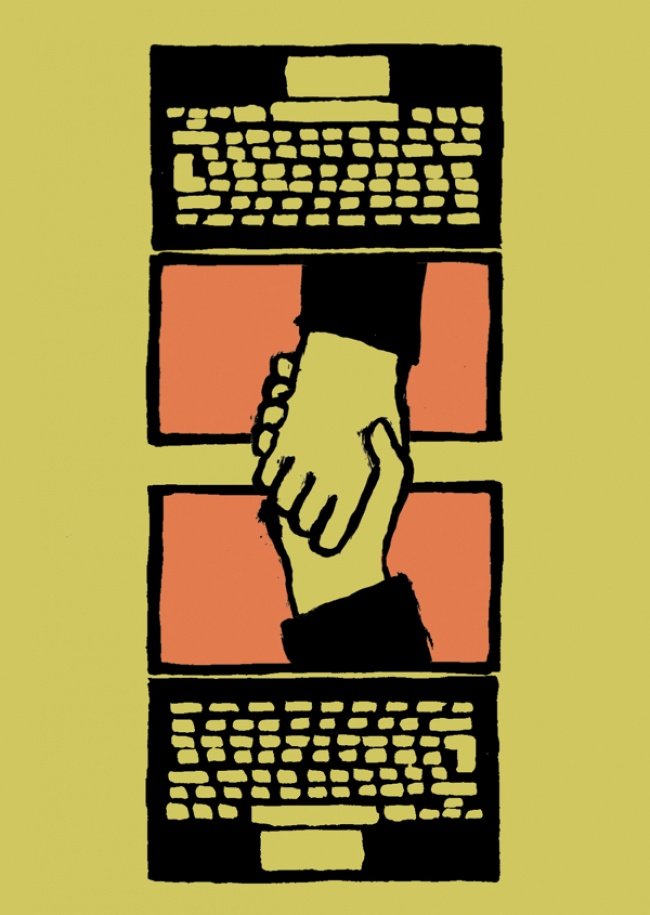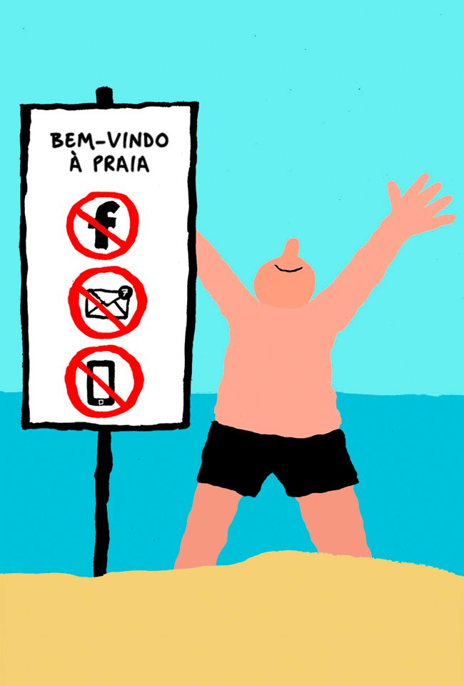 Jean Jullien é um reconhecido ilustrador francês. Seu tema predileto é a ironia sobre o vício da sociedade moderna em celulares e redes sociais.