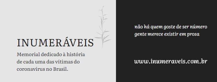 Mas parece que mais gente tem pensado sobre isso e, nessa semana, o Portal Globo começou a organizar um “Memorial Covid” digital. Outro site, Inumeráveis, dá a oportunidade para familiares ou conhecidos contarem a história de alguém que morreu da doença – você pode enviar o nome, a data de nascimento, da morte, o local da morte e um pequeno texto sobre a pessoa. Será que quando isso acabar teremos um “Memorial Covid” em todos os países?
