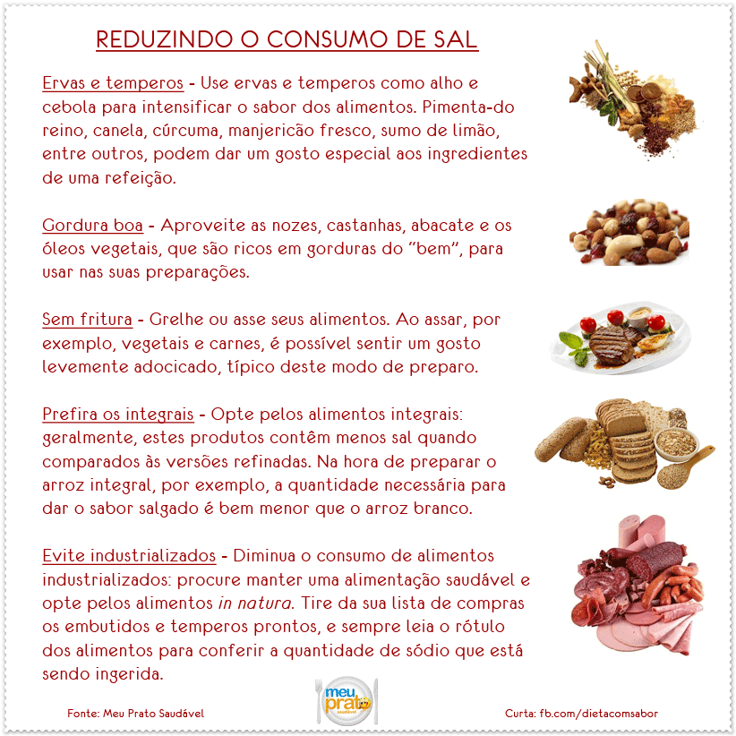 Um dos alertas do projeto “Meu Prato Saudável”, do Hospital das Clínicas e do InCor (Instituto do Coração), é destacar o uso exagerado de sal. A função do sal no organismo humano é controlar as substâncias que entram e saem das células – regulando a quantidade de nutrientes e água.